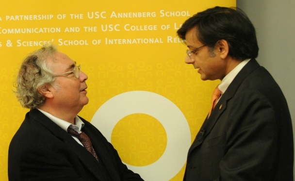 On March 10, 2009 The USC Center on Public Diplomacy proudly hosted Dr. Shashi Tharoor, Chairman of Dubai-based Afras Ventures and former Under-Secretary-General of the United Nations, as part of the Center's Distinguished Speaker Series on the Public Diplomacy of the Emerging Great Powers. Based on his recent book The Elephant, the Tiger, and the Cell Phone, Dr. Tharoor discussed India's rise to world leadership and how India represents itself to the world through public diplomacy. Copies of The Elephant, the Tiger and the Cell Phone were made available for purchase at a reception following the event and sold out quickly.